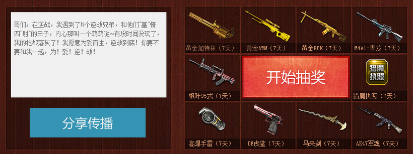 哥们,在逆战,我遇到了N个逆战兄弟,和他们“基”情四“射”的日子,内心那叫一个萌萌哒~有段时间没玩了,我的枪都落灰了!我愿意为爱而生,逆战到底!你要不要和我一起,为!爱!逆!战!——号外!号外!逆战相册为爱逆战活动开启了,AR15S(5天)、scar巨齿鲨(30天)等等好礼等你来拿!下面赶紧和小编一起来看看逆战相册为爱逆战活动地址及相关奖励详情介绍吧!