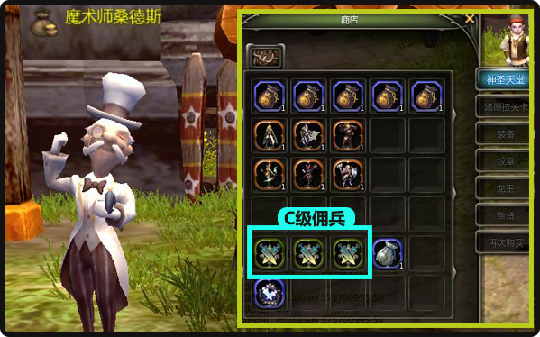 C级佣兵可通过完成任务或在魔术师桑德斯处购买获得。