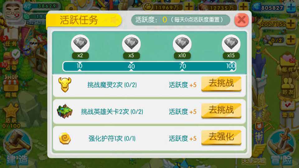 新增“挑战英雄关卡”、“强化护符”活跃任务。完成这些任务,就有额外钻石送给你哦,