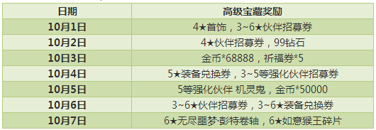 而每天6个藏宝关卡奖励中,将至少包含2个 “高级宝藏奖励”: