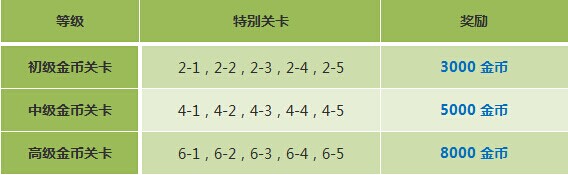 (2)特别关卡奖励不影响关卡正常产出,金币关卡奖励不受双倍金币活动影响。