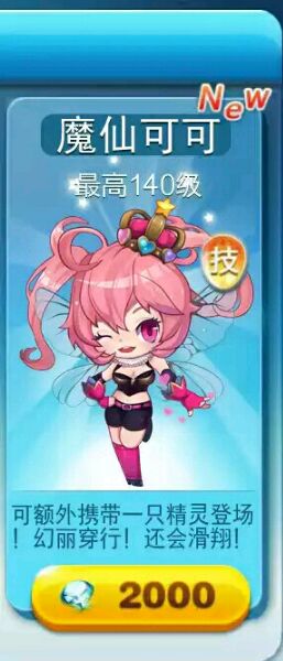 再来说一下魔仙可可获得方式,我们可以通过钻石来购买,截图上虽然显示的是2000钻石,不过根据以往经验来看,在魔仙可可正式上架后的价格一定不是这个,另外我们也可以通过限时积分兑换来获得魔仙可可,当然了,我们也可以通过积分抽奖的方式来得到这个性感的人物,像小编这样脸黑的还是慢慢攒钻石吧。