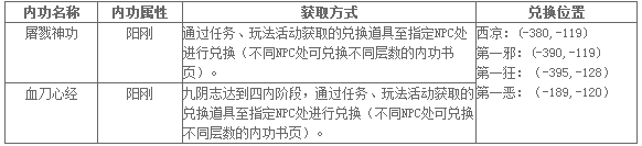 1.门派内功:屠戮神功【阳刚】、血刀心经【阳刚】;