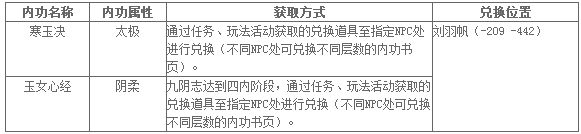 1.门派内功:寒玉决【太极】、玉女心经【阴柔】;