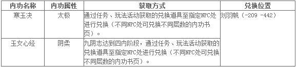 7.关联门派武学:非易容、下山状态的玩家进入古墓派后可以在曲意(坐标:-213 -440)处兑换学习武当武学书页1-5层,凌云龙(坐标:-215 -437)处兑换学习武当武学书页6、7层。