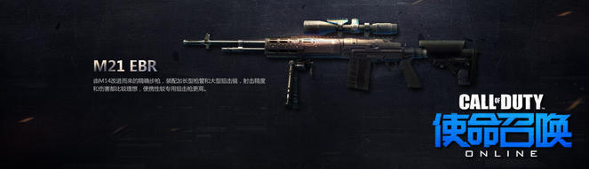 M21 EBR则是一款由M14改进而来的精确步枪,可佩加长型枪管与大型狙击镜,精度、杀伤力、便携性合而为一的特点,在这支始武器上体现得淋漓尽致。