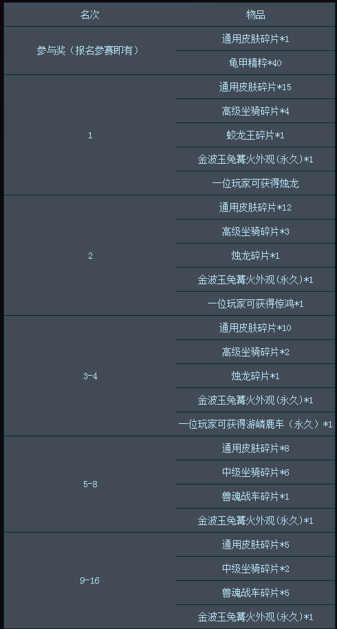 9月30日-10月15日可进行线上报名,所有报名队伍将分为16个分赛区,10月15日分赛区单场淘汰赛角逐出16支获胜队伍,16支队伍进行三局两胜全民争霸总决赛,打出最终的获胜队伍。