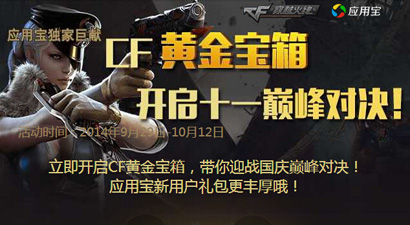 立即开启cf黄金宝箱,带你迎战国庆巅峰对决,应用宝新用户礼包更丰厚哦
