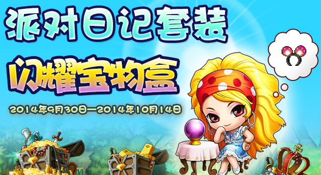 首页 → 最新资讯 → 游戏要闻 → 冒险岛9月30日-10月14日闪耀宝物盒 得派对日记套装