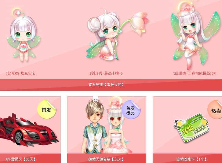 活动内容:史上最超值礼包,只为国庆狂欢!打开可100%获得首发宠物【莲爱天使】,首发永久【莲爱天使套装】、首发A车【霹雳火】30天以及1个【宠物变形卡】,四个全部获得哦!仅售199Q币!