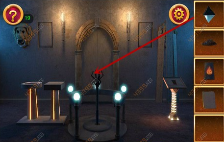 3.将棍子放在房间的中间位置,放好之后再将宝石放在棍子上。