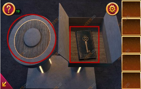 7.点击房间左侧的圆形石墩,将两个圆环拼上去,可以在旁边得到一把钥匙,利用宝石将钥匙变成大门钥匙,即可成功脱出本关。
