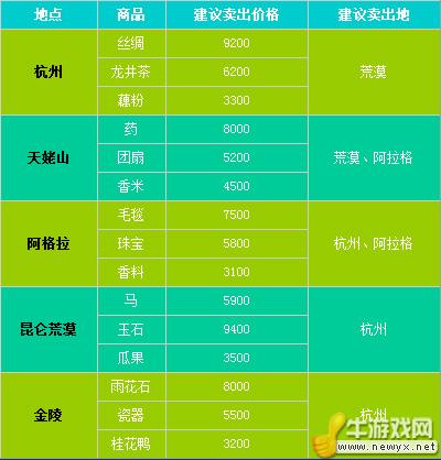 作为一名职业商人,你的头脑应该时刻想着各种数据,数据包括时间,地点,价格,货物,数量,资金……每条数据做到井然有序,熟练地掌握好跑商的基本功,不要拘泥于路线和价格,所谓水无常形,跑商也是这样,比如金陵购买的货物,本打算买到阿格拉,但是你发现卖到天姥仙山也能赚一笔钱,那么就直接在天姥山处理掉身上的货物,然后从容的从天姥山买货去昆仑荒漠。