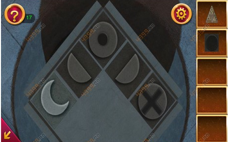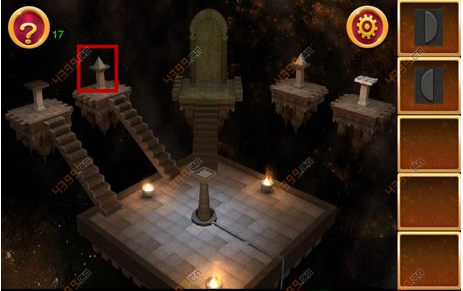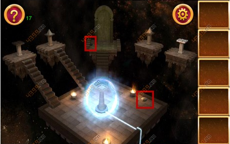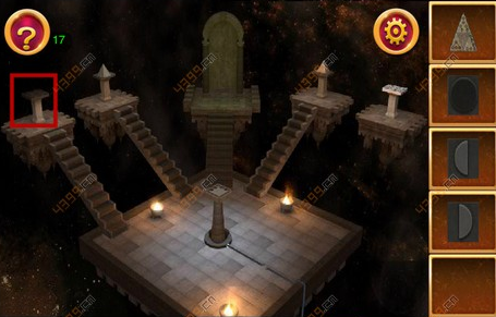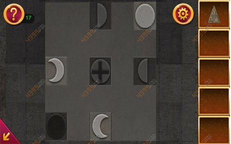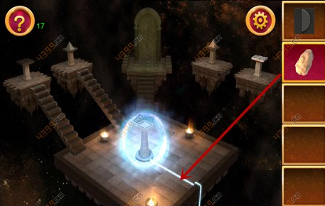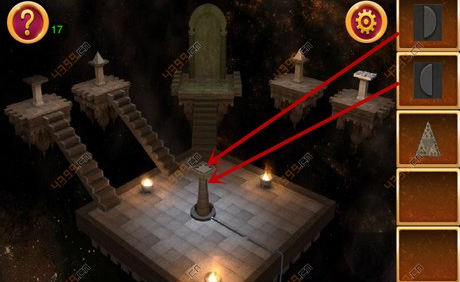 7.将两个半圆石和一个十字形石放在中间石头对应的位置上,右边出现新的楼梯。