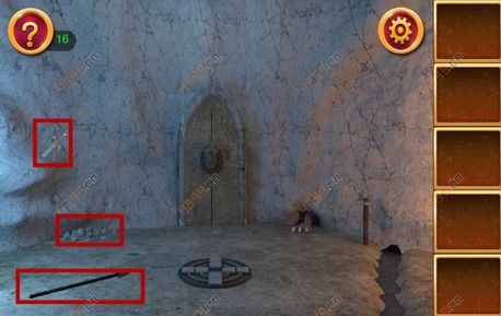 1.本关一开始先收集宝剑,长矛,石堆中的绳子。