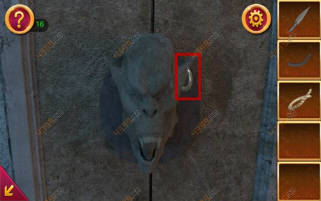 3.然后拿到门上怪物头的耳环,将手上的四样物品合并,得到一个钓鱼竿。