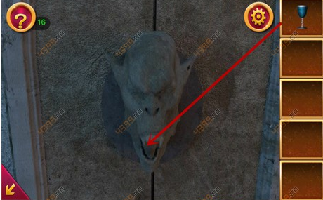 8.用杯子到水边装水,然后将水倒进大门怪兽头的嘴里,门就会打开,本关成功脱出。