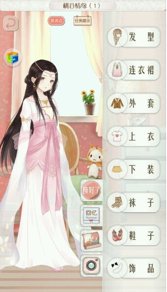 桃谷情缘1可以使用嫦娥套装。换装时回忆功能,然后换一下高等级的袜子、头饰、妆容、项链等等即可。