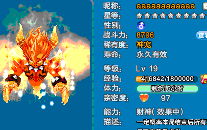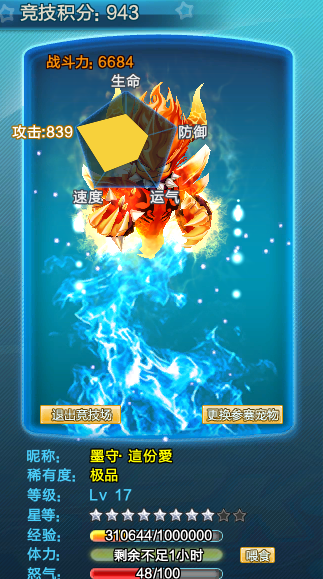 男号9和10星都是强化生命,结果都是一个极品上1星,终于上满星了,那次我男号运气真得超好的 这是男号第一次运气超好,但是 女号之前强化宠物比男号运气好,也都是一个宠物上1星,这次就不行了