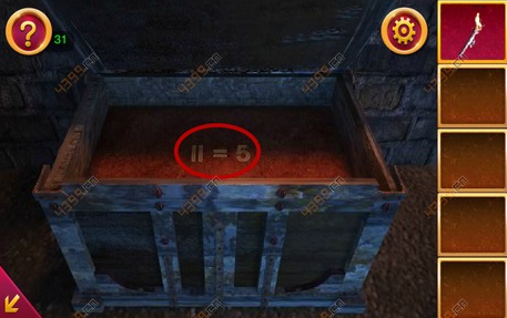 4.用钥匙打开地上的宝箱,可以得到一把剑刃,同时在宝箱内看到密码2=5