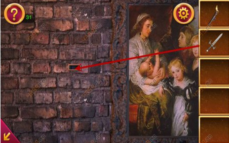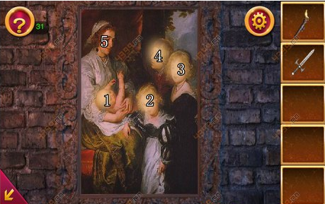 6.点击墙上的油画,按照图中的顺序依次点击油画上的头像,此时会出现一个暗格。
