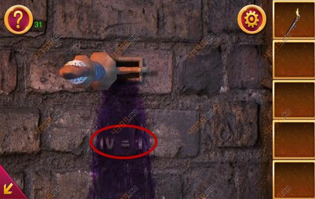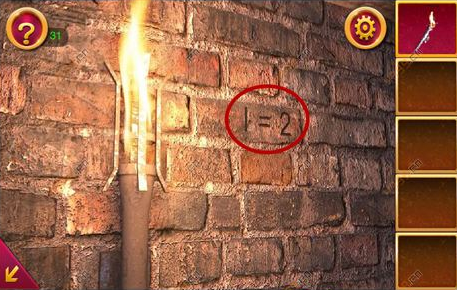 8.然后点击门右边的未点燃的火把,将其点燃,可以看到密码1=2