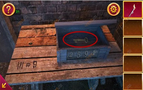 10.在桌子上的密码盒内输入密码2591,即可得到钥匙,开门脱出。