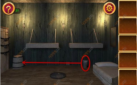 2.将装满水的水桶中的水倒进房间地上的水沟里,可以得到钥匙哦。