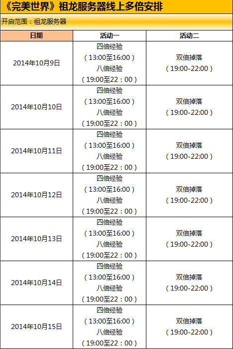 首页 → 最新资讯 → 游戏要闻 → 完美世界10月9日-10月15日活动 祖龙服务器多倍经验双倍掉落