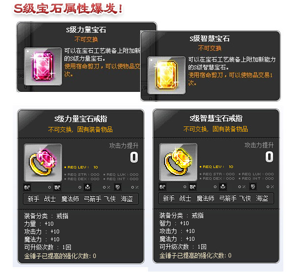 首页 → 最新资讯 → 游戏要闻 → 冒险岛10月4-10月14日转蛋机 得s级力量宝石戒指 s级智慧冒失戒指