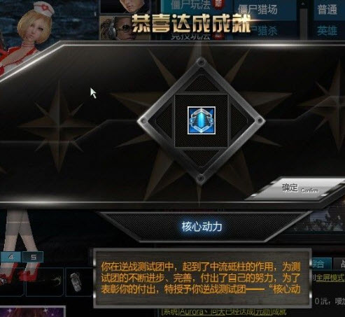 逆战核心动力名片描述:你在逆战测试团中,起到了中流砥柱的作用,为测试团的不断进步、完善,付出了自己的努力,为了表彰你的付出,特授予你逆战测试团——核心动力名片