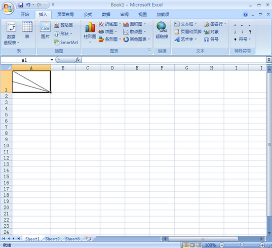 3.如图所示,现在在A1单元格中就插入了一条斜线。