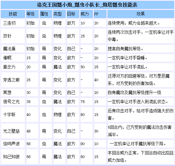 洛克王国瓢小炮_瓢虫小队长_炮塔瓢虫技能介绍