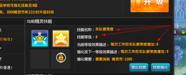 QQ飞车慢慢升级精灵学院呗,我精灵学院升到7级车队繁荣还是没解锁不知道要几级反正其他的技能6级前都能解锁吧,只要点下学习就弹出学习技能需要一本,XXX技能书,如果等级不够会说物品停售,如果等机够了就能买经验加成1300点券,幸运币的540点券吧,都蛮便宜的车队繁荣加成。