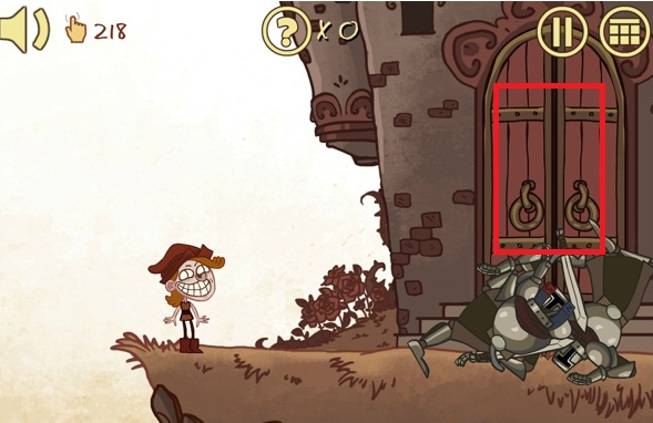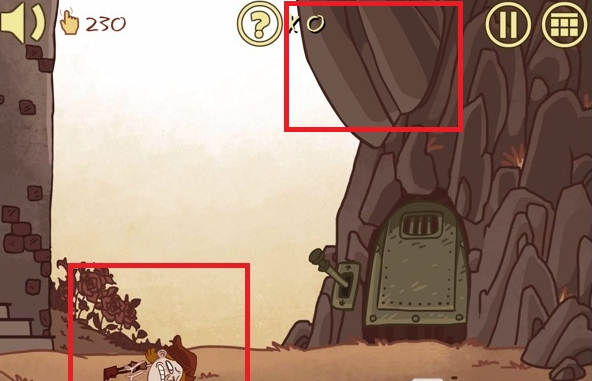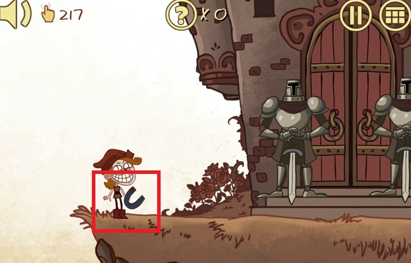 1、在第十一关中,我们可以看到小人拿着磁铁。然后玩家可以点击这个磁铁,将这个磁铁扔到守在门两边的门卫身上去。然后我们会发现门卫已经被我们砸晕了哦!现在我们在点击这个大门,然后小人就会进入到大门里面去了。