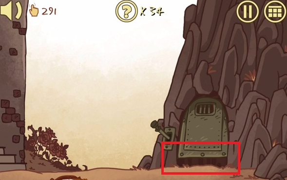 4、我们可以再次点击这个大石头,然后小人就会出来了。这个时候我们在点击门上面的按钮,然后我们在点击那个大门的最下面,然后小人就会从哪个下面过去哦!