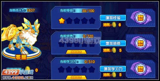 4、获得的光之耀就可以来提升苍耀的战斗力啦,分别是增加经验、资质和学习力。