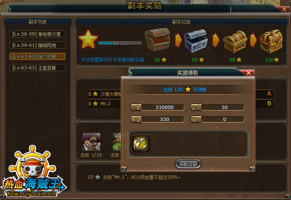 每当一个地图副本通关后,只要能达到规定的战斗评价并且达成特殊挑战,就能获取到星星,攒到足够的星星,就能开启副本奖励的不同宝箱,宝箱内也有大量的贝里等奖励。每个副本都有副本奖励,千万不要忘记哦!