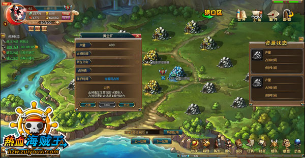 当玩家达到一定等级后,可以通过界面右上角的资源按钮进入矿山界面。这里会有铁矿、银矿和黄金矿等矿产资源,玩家可以通过占领来获得贝里收入。如果没有找到好的矿山,也可以通过攻打的方式来占领别的玩家已经占领的矿山。