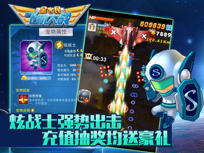 10月11日至16日,拥有高达1050的满级攻击力,满级技能“治愈修复”可在击杀敌机后,使主机有概率回复15点生命值的炫战士九折持续热销!同期,游戏商城大比例充钻返钻,助你早日入手女神萌宠!11日至13日,每日充值30元即返100钻石,参与钻石抽奖累计达10次可得镭射磁解器,达30次再送闪电光束枪!炫战士带领你一起热购,停不下来!