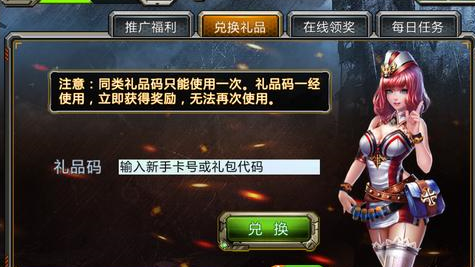 玩家进入游戏主页之后,直接点击进入【在线奖励】-【兑换礼品】,接下来玩家只要把你获得的礼包兑换码输入即可!