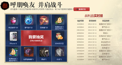 成功邀请1个好友在页面领取1级新手礼可获得1次抽奖机会,每个QQ只能被成功邀请1次邀请好友