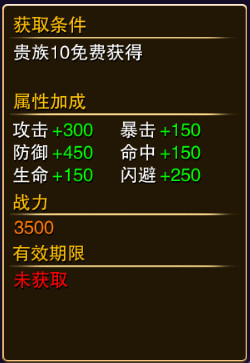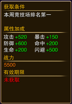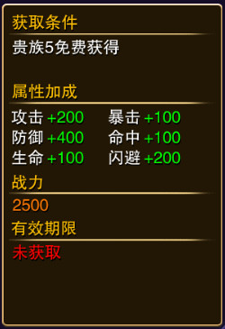 称号可以通过签到,贵族,战斗力,排行榜等都可以获得,而称号可以增加攻击,暴击,防御,命中,生命,闪避