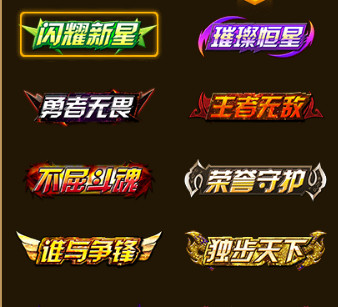 目前游戏中有闪耀新星,璀璨恒星,勇者无畏,王者无敌,不屈斗魂,荣誉守护,谁与争锋,独步天下,时光主宰,灭世之手