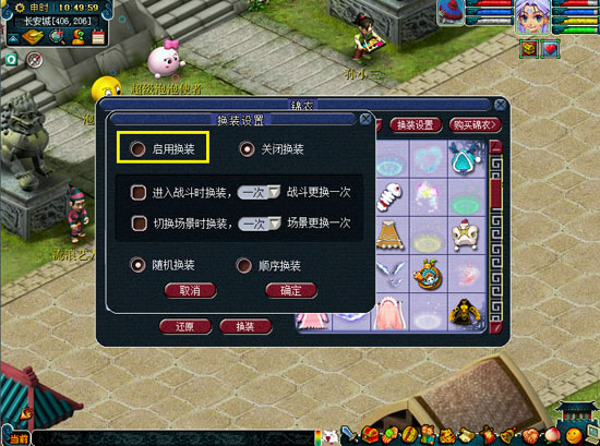 点击界面上的“换装设置”后,选择“启用换装”即可开启自动换装了。