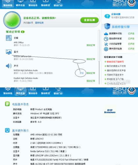 查看方法;例:利用360驱动大师,参看配置行不。不行可以利用驱动大师进行升级哦!