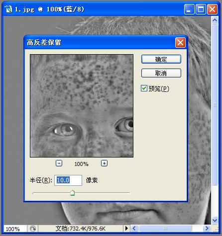 步骤一、打开原图像,Ctrl+J复制一层,养成一个好习惯哦,不要对原图操作,然后进入通道,选择蓝色通道,复制一个蓝色副本,对蓝色通道层做滤镜处理:【滤镜】→【其他】→【高反差保留】,设置半径参数设为4,如图: