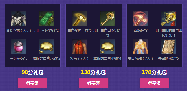 达到页面所示相应分数的玩家,可以领取相应礼包。一次活动期间内,每个QQ单个礼包只能领取一次。