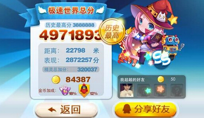 小魔女拥有可以将障碍物变成金币的技能,舞狮闹闹可以获得30倍bouns奖励得分;开局冲刺800米;有终极冲刺;游戏中会遇到“高分绣球”。