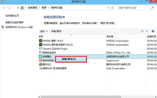 2、之后就可以快速打开Win10程序和功能界面,此时我们就可以找到Win10计算机中所安装的应用程序,我们找到需要卸载的应用程序名称,使用鼠标在名称上右键,之后可以看到“卸载”操作,我们点击【卸载】即可,如下图所示。